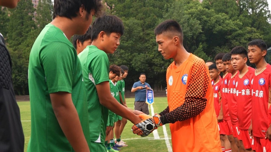 提前十天来到上海适应场地,在新民晚报杯全国总决赛前,拉孜中学队还与杨浦区男子U15队伍进行了一场友谊赛。友谊赛赛场,藏汉双语的加油声此起彼伏,高原耐力与灵巧传切相互碰撞,相得益彰。终场哨响,两队队员握手、鞠躬,镜头定格下最动人的画面:藏族少年与汉族队友紧握的手掌上,是同样的拼搏印记。